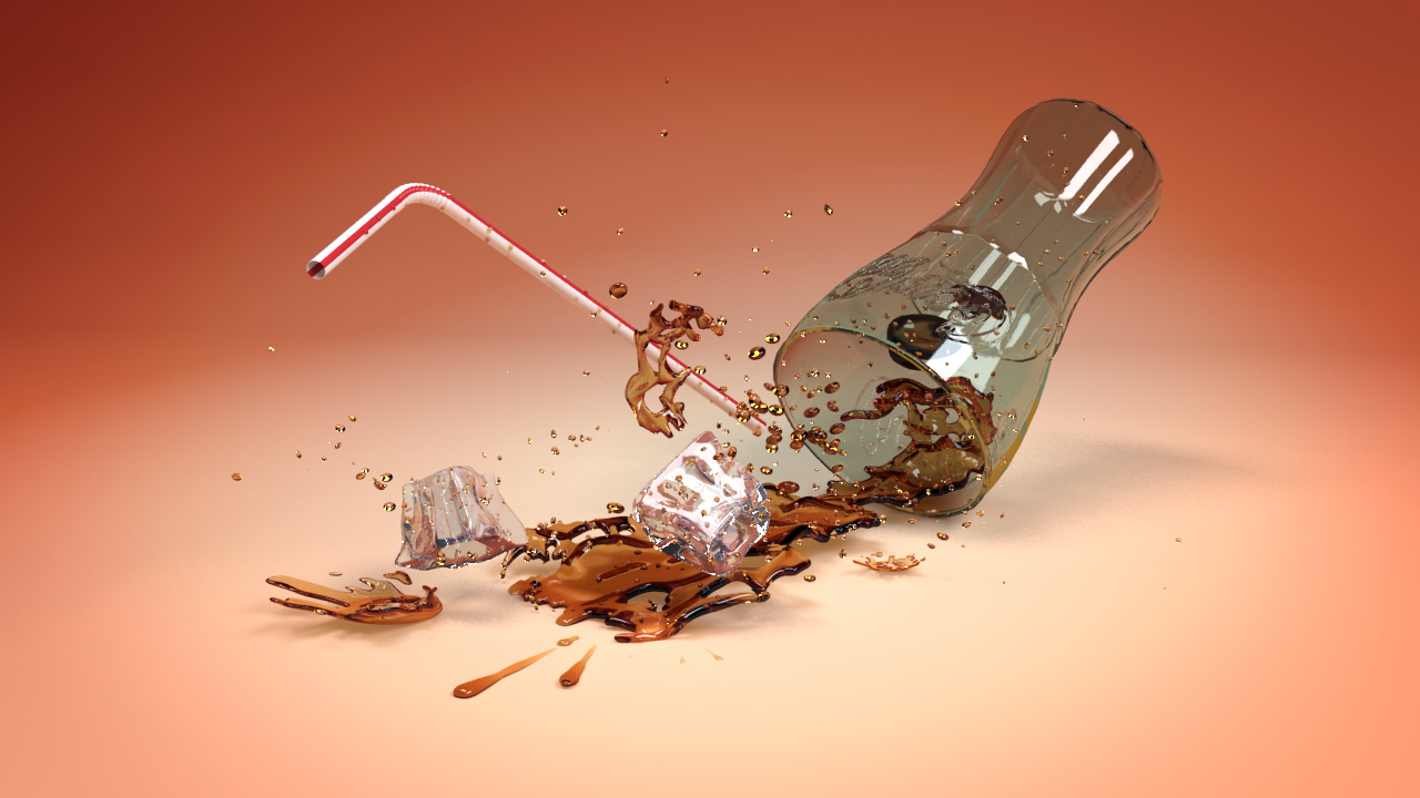 I loved doing this project. I used the modeling paint brush in Max to manually add, delete, and deform the polys on this stationary model of a spilling liquid. Threw in some more splash particles with pFlow, normal maps for the Coca-Cola logo on the glass and played with refractive materials in VRay! I like how it turned out a lot.